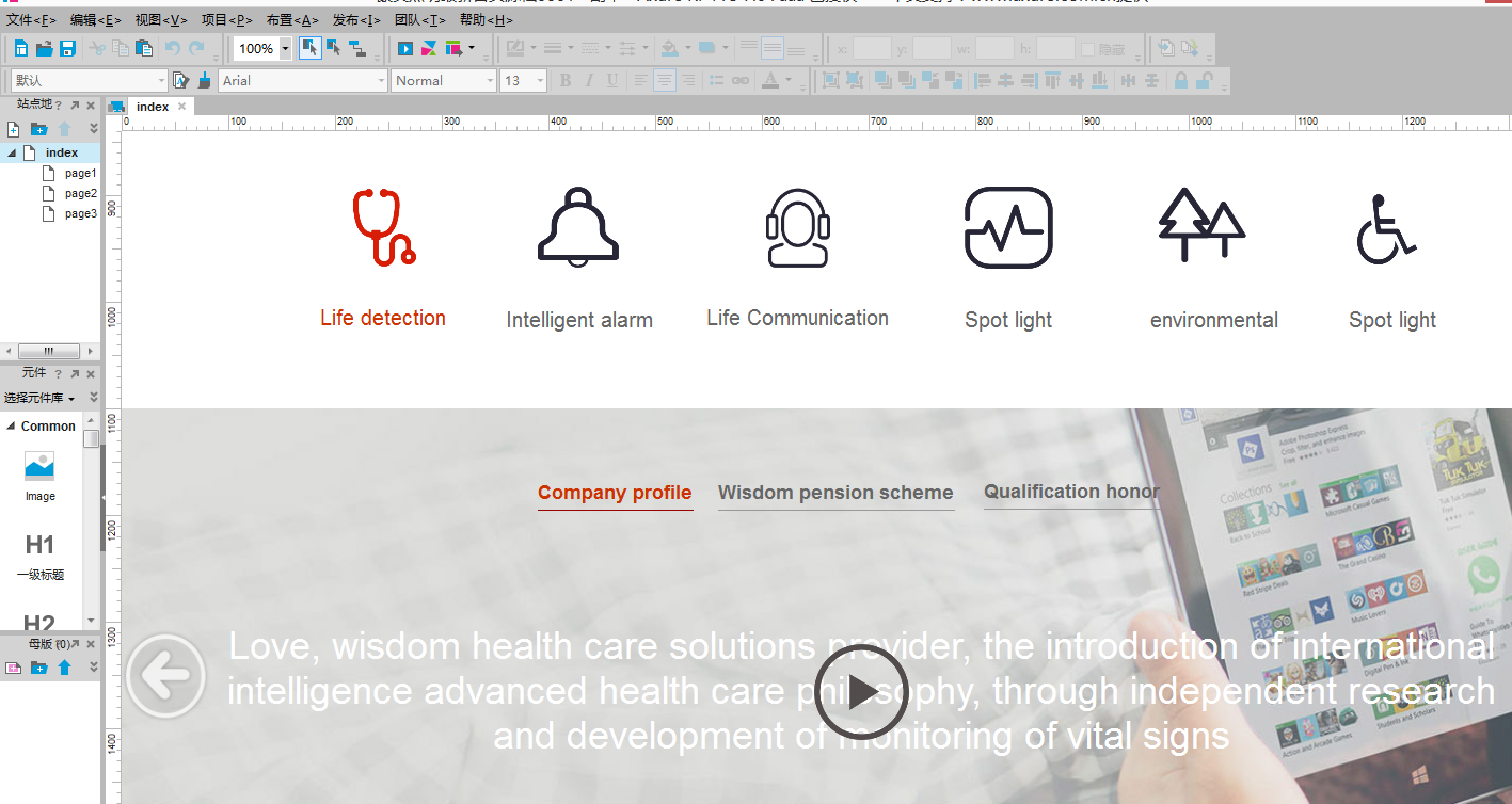 第二步:制作網(wǎng)頁原型圖。這是一個(gè)費(fèi)腦活,目前大多數(shù)人都是采用Axure的軟件制作,畫原型圖需要參考很多網(wǎng)站風(fēng)格,通過不斷的借鑒,才能總結(jié)自己的網(wǎng)站風(fēng)格。目前設(shè)計(jì)流行的元素是采用圖標(biāo)配文字,界面扁平化,尺寸做成寬屏風(fēng)格。在制作原型圖的過程中,我們需要看很多的網(wǎng)站風(fēng)格,如果你是要做外貿(mào)網(wǎng)站,那么你需要尋找很多國外大牌的網(wǎng)站,看一下他們的網(wǎng)站風(fēng)格,才能很好的找到那種思維感覺。國內(nèi)的網(wǎng)站相對(duì)來說還是比較保守一些,盡管也是扁平化設(shè)計(jì),但是從布局上大多數(shù)網(wǎng)站是異曲同工。如圖所示原型圖制作: